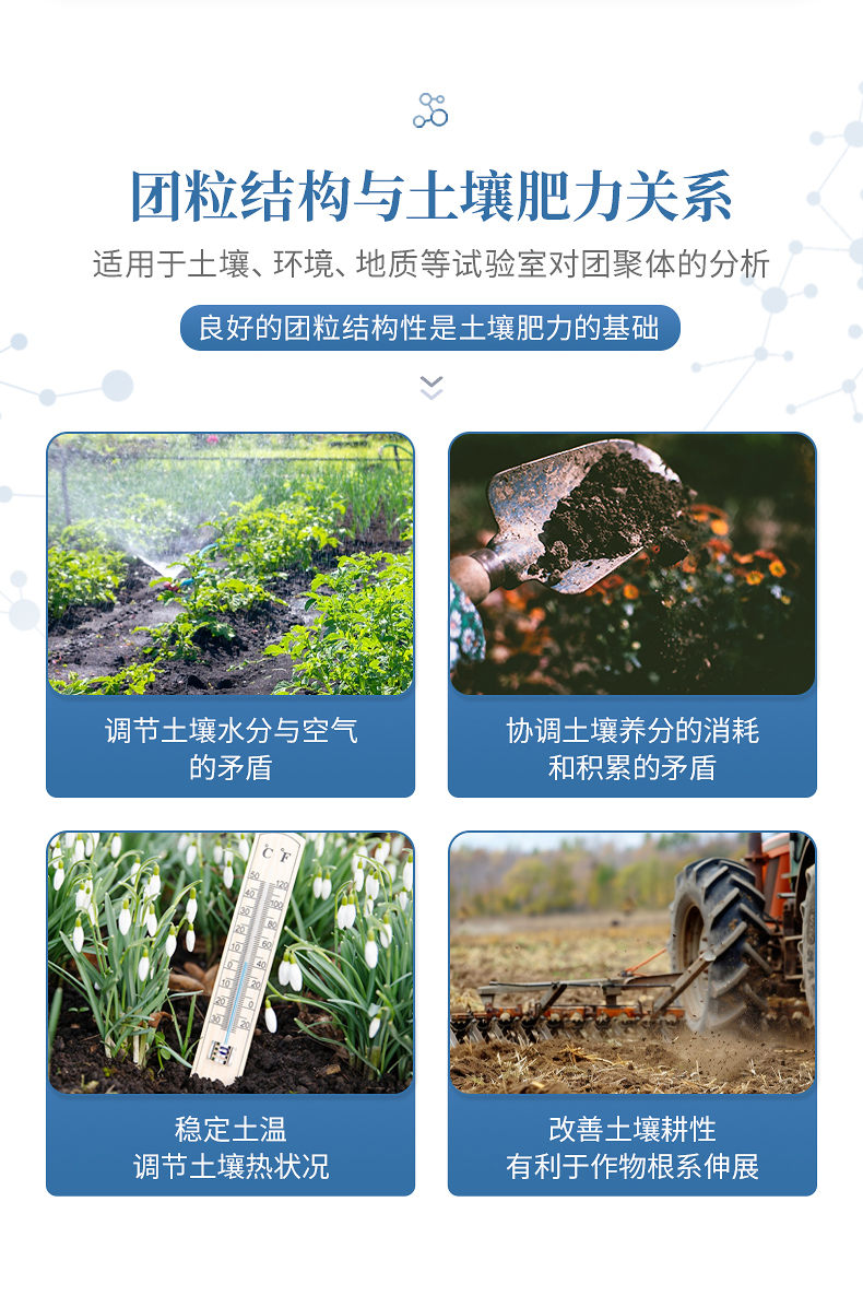 1、土壤團(tuán)粒結(jié)構(gòu)對土壤肥力起著重要作用。良好的團(tuán)粒結(jié)構(gòu)體一般應(yīng)具備三方面的性質(zhì):具有一定的大小,過大或過小都對形成適當(dāng)?shù)目紫侗壤焕?具有多級(jí)孔隙,大孔隙可通氣透水,小孔隙保水保肥;具有一定的穩(wěn)定性,即水穩(wěn)性、機(jī)械穩(wěn)性和生物學(xué)穩(wěn)定性。良好的團(tuán)粒結(jié)構(gòu)性是土壤肥力的基礎(chǔ),團(tuán)粒結(jié)構(gòu)與土壤肥力的關(guān)系主要表現(xiàn)在以下幾個(gè)方面:調(diào)節(jié)土壤水分與空氣的矛盾;協(xié)調(diào)土壤養(yǎng)分的消耗和積累的矛盾;穩(wěn)定土溫,調(diào)節(jié)土壤熱狀況;改善土壤耕性,有利于作物根系伸展。土壤團(tuán)粒分析儀適用于土壤、環(huán)境、地質(zhì)等試驗(yàn)室對團(tuán)聚體的分析。