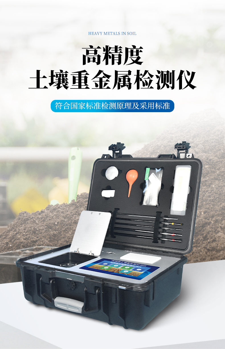 土壤重金屬污染問題日益嚴重,造成土壤耕作層內的鎘、銅、砷、鉻、汞、鎳、鋁、氟、鈦、硒、鐵、鋅、錳、銅等重金屬大量富積、積累,成為當下面臨的主要環境問題之一。土壤中的重金屬通過在作物體內富集進入食物鏈,對人畜健康造成嚴重威脅。有色金屬礦山的開采、 工業“三廢”的排放、含重金屬廢棄物堆積、農業生產中的污水灌溉,農用化學藥品的不合理使用等,都可能導致有害重金屬元素直接或間接進入土壤,導致土壤、作物、果蔬、水質、水產品等重金屬含量嚴重超標。但是當前重金屬測定方法測定速度慢、步驟繁瑣且儀器昂貴。基于這種形勢,我們開發出了重金屬快速測定方法。