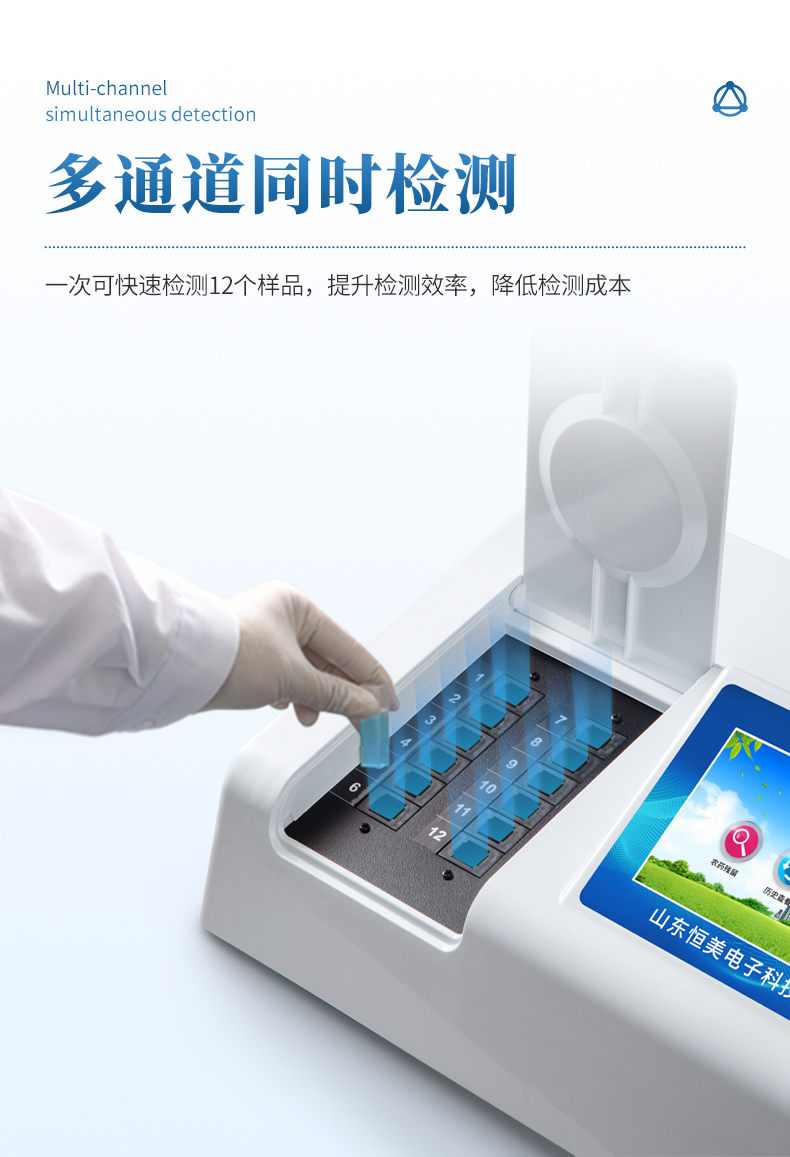 2、12個檢測通道,一次性可快速檢測12個樣品,極大提升檢測效率,降低檢測成本。